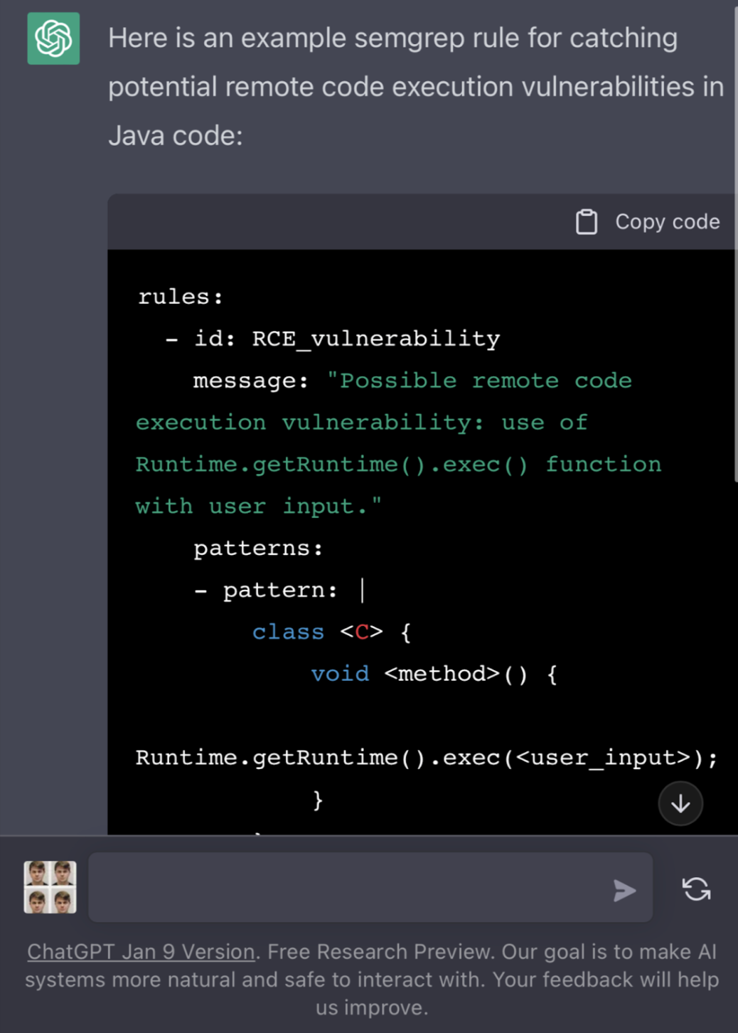 But just asking ChatGPT to write a rule still requires a lot of domain-specific knowledge. We've tried to make it easier and easier to write Semgrep rules.