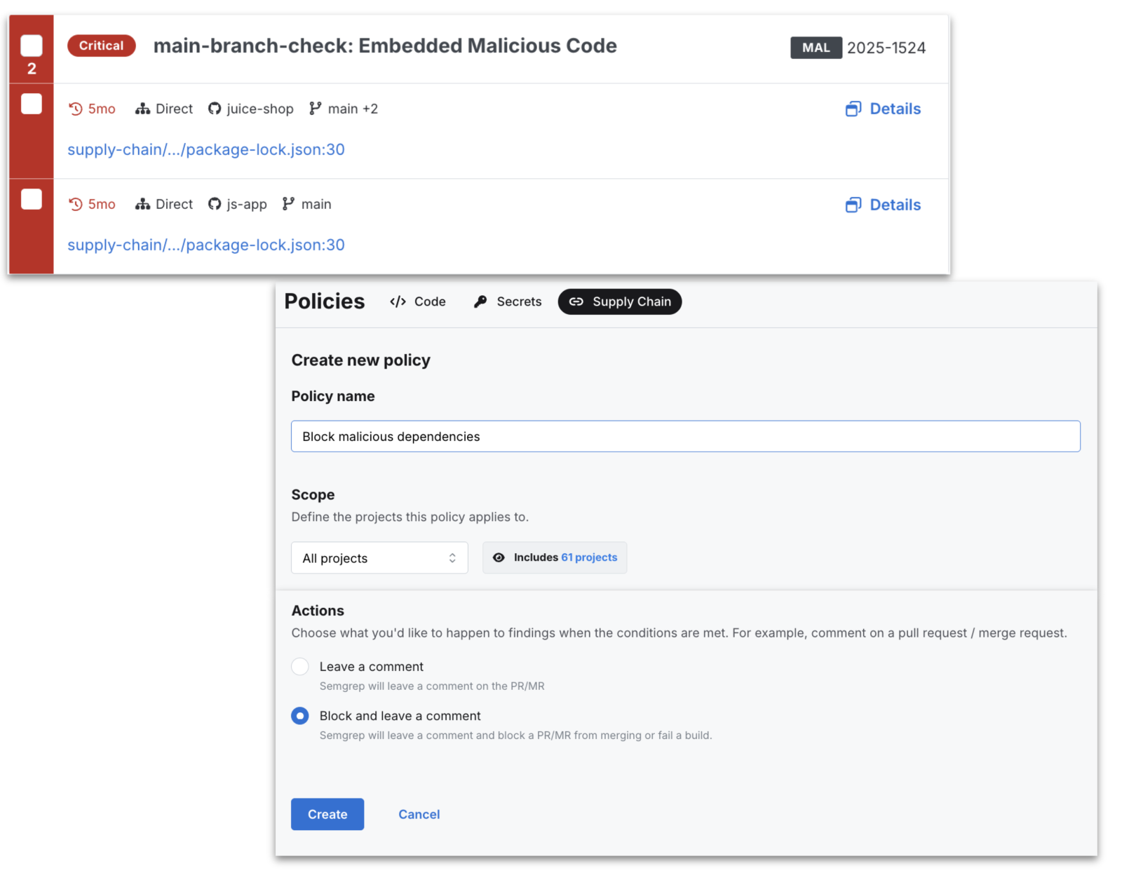 Semgrep Supply Chain is the most important line of defense against new dependency vulnerabilities: